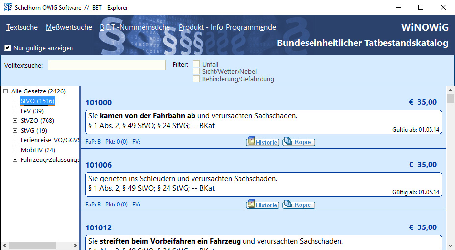 Das komfortable Nachschlagewerk für den Bundeseinheitlichen Tatbestandskatalog. Der BET-Explorer ist kostenlos und kann ohne Einschränkung kopiert und weitergegeben werden.